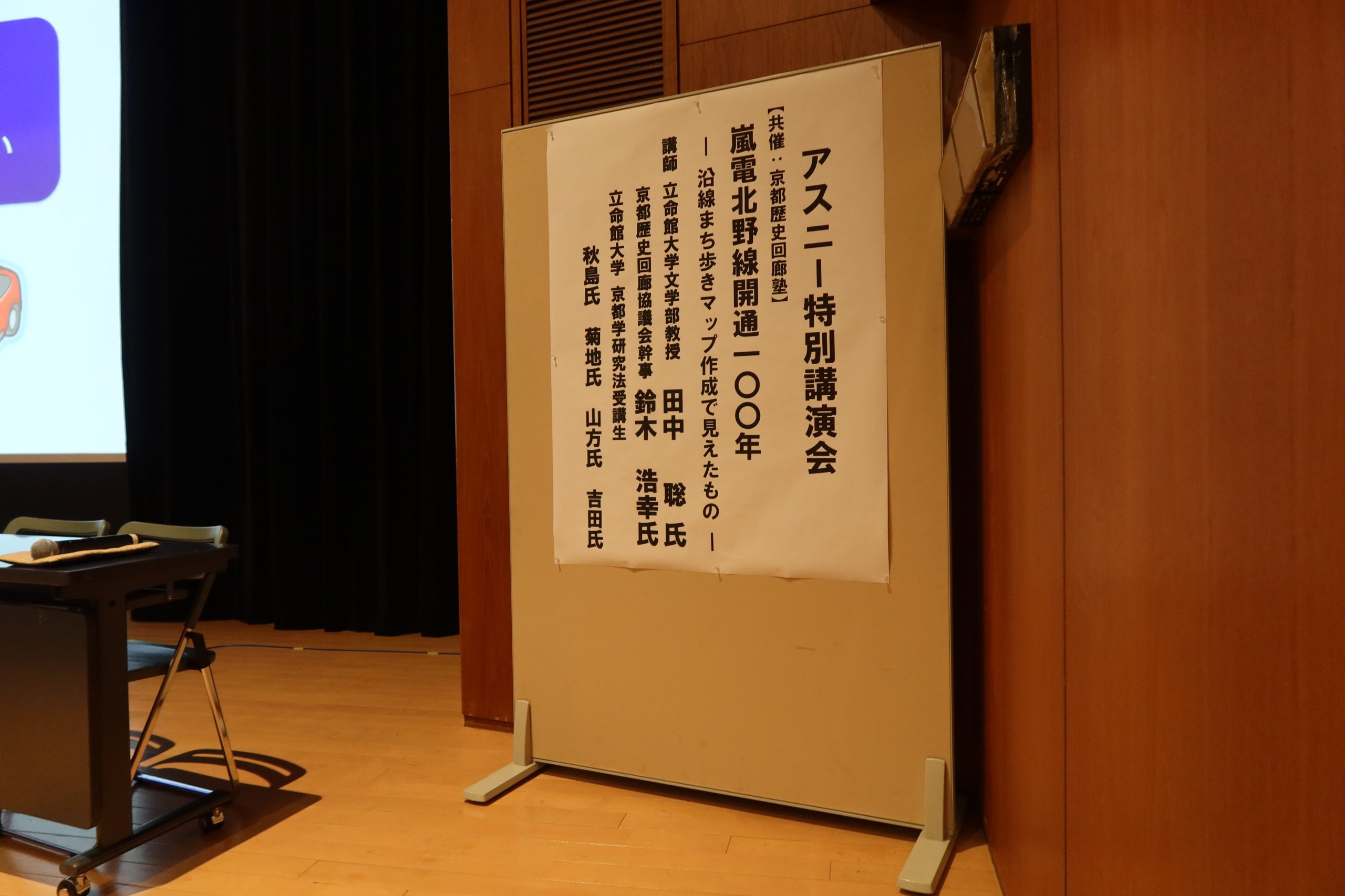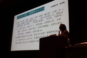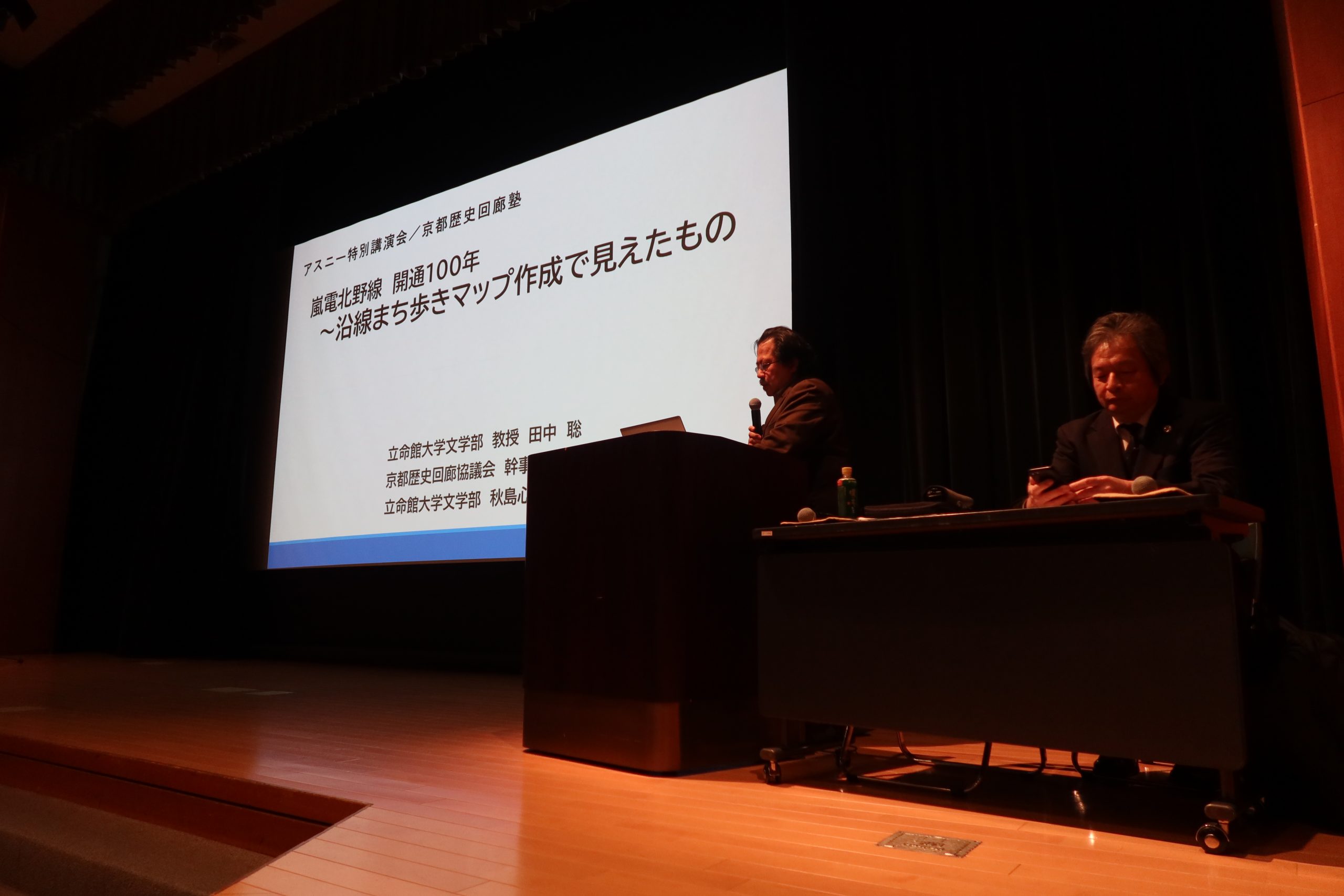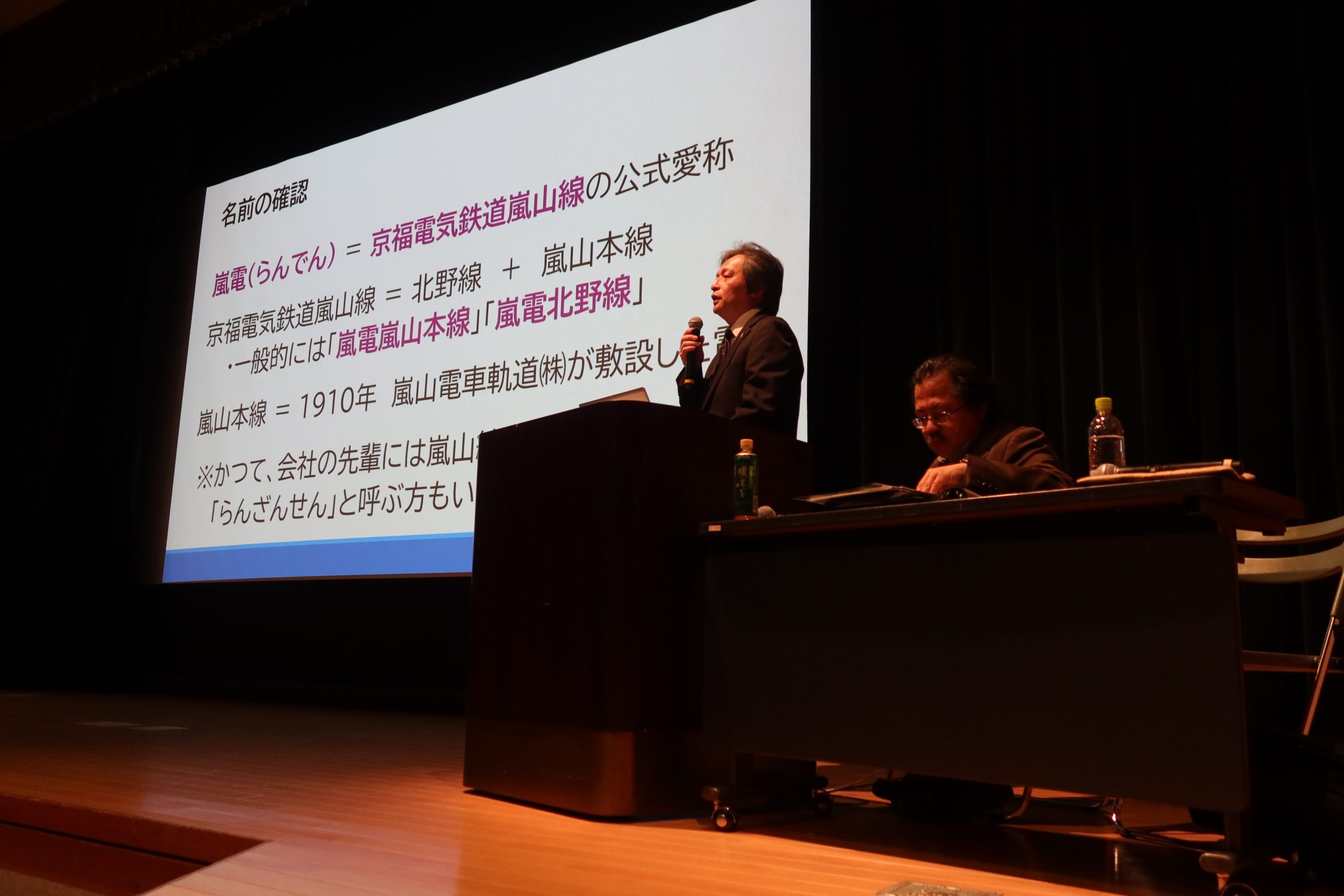 続いて田中教授より、「前近代の北野・嵯峨野」についてお話があり、最後は鈴木浩幸氏による「嵐電北野線のあゆみ」のお話で、講演は締めくくられました。