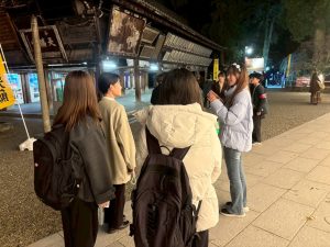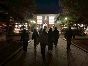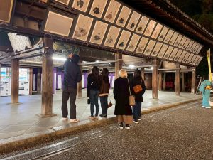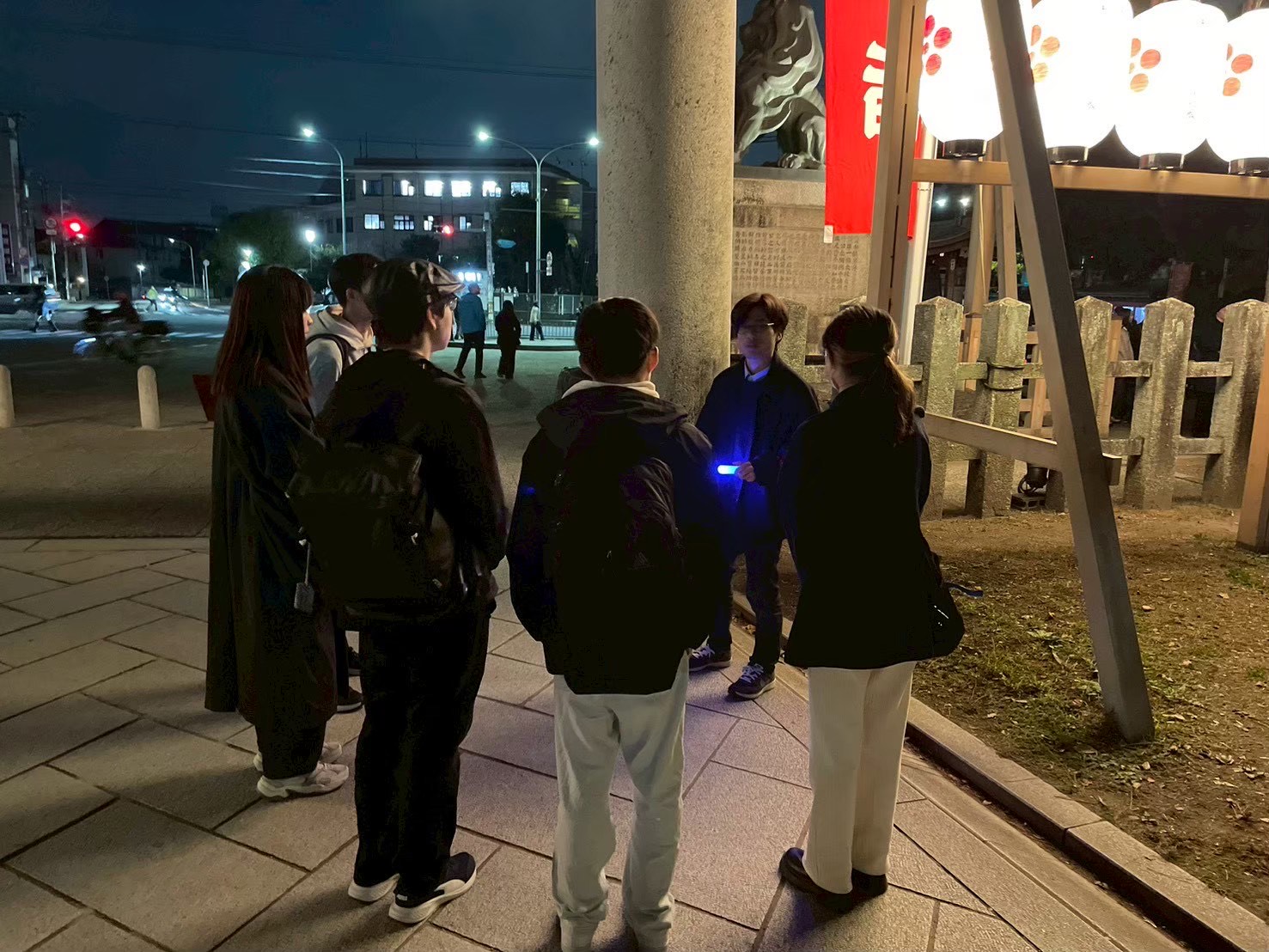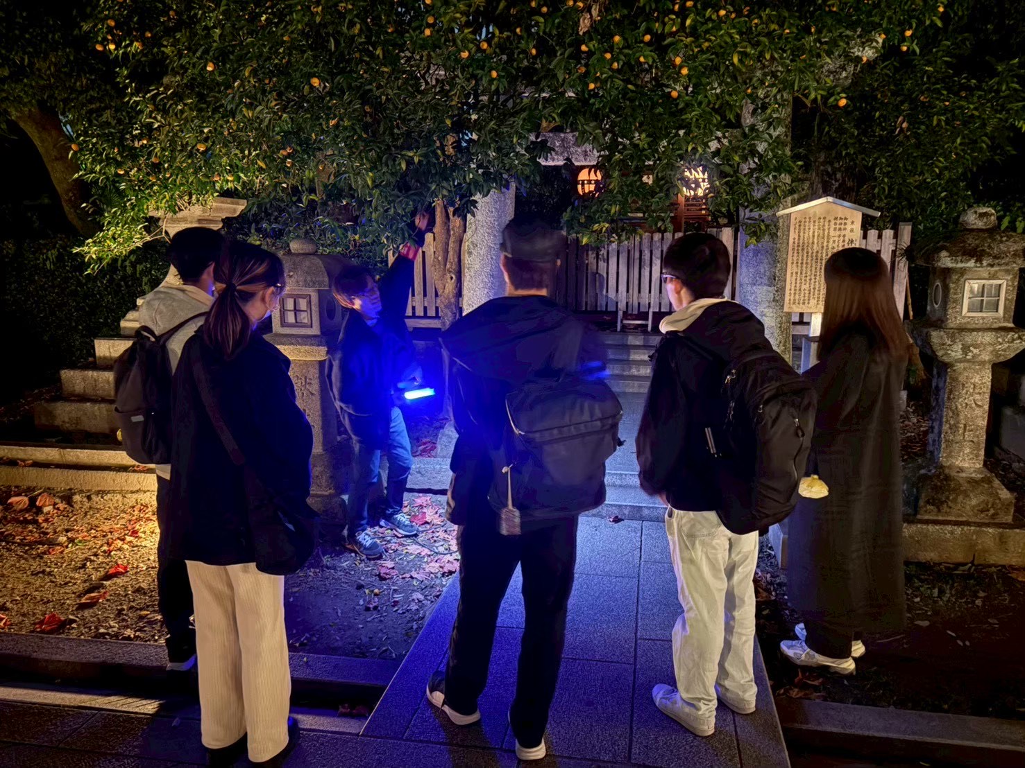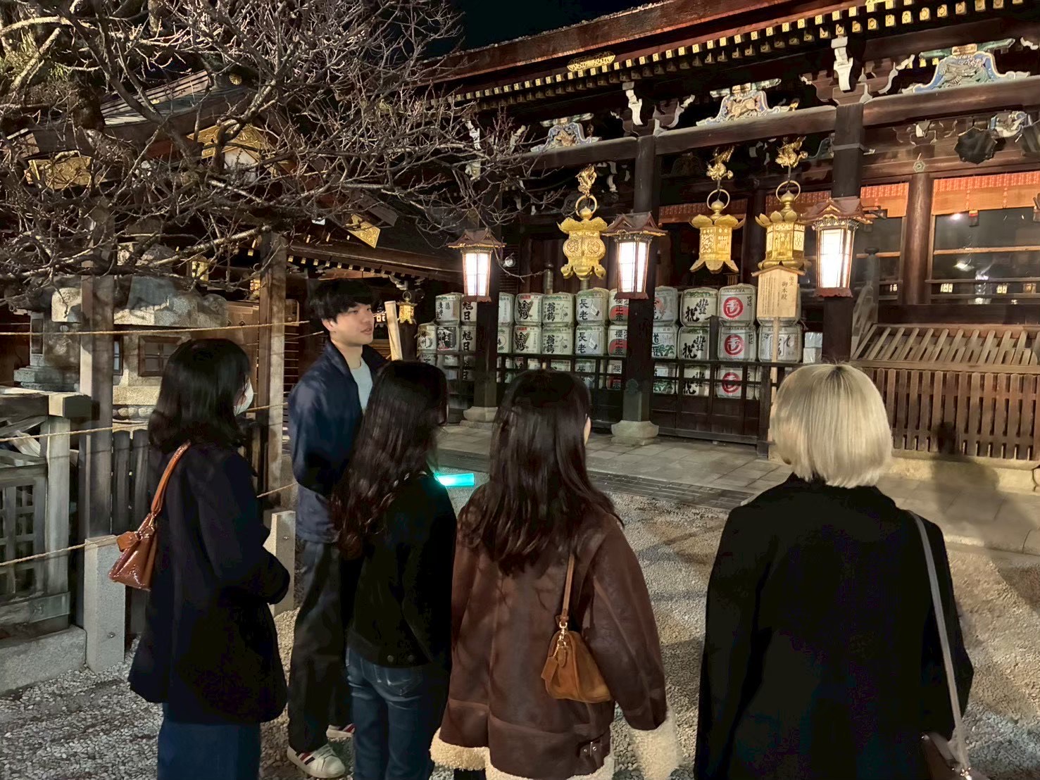 12/2(火)に、「北野天満宮ガイドツアー・紅葉ライトアップ」を開催しました。当日は、立命館大学の学生・院生が80名集まってくれました。北野天満宮で研修を受けた「立命館大学神社仏閣ボランティアガイド」のメンバー24名がグループに分かれ、ガイドツアーを実施しました。