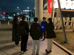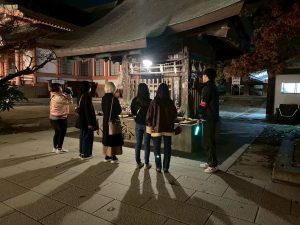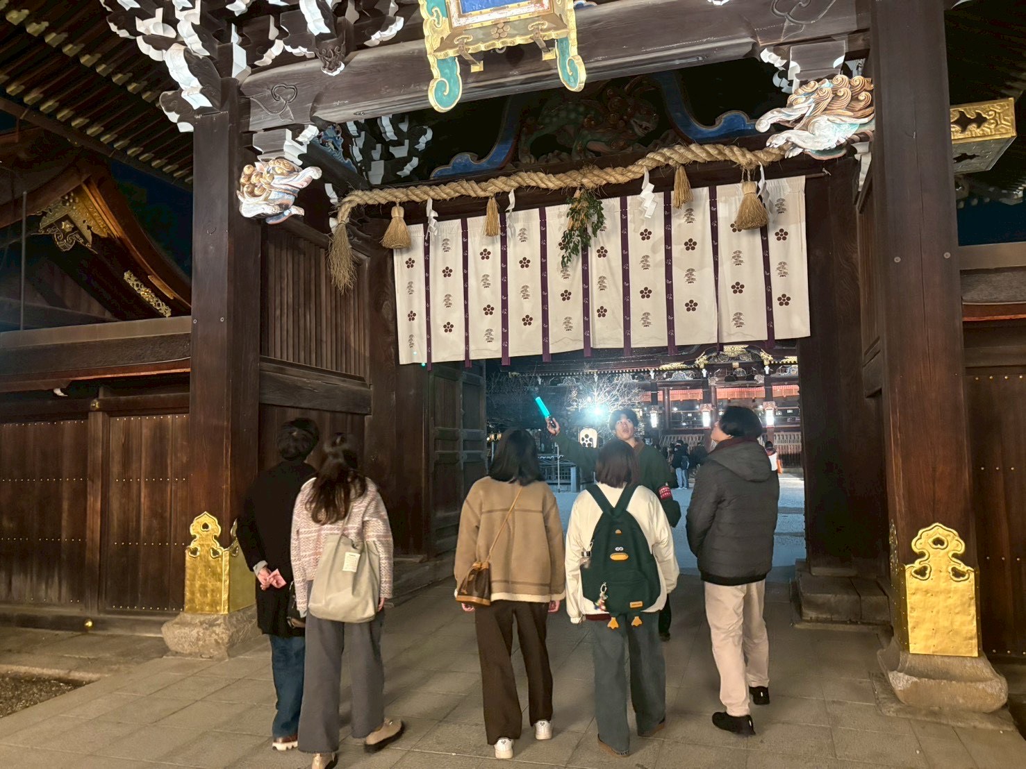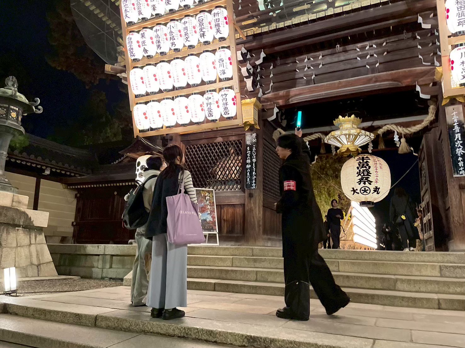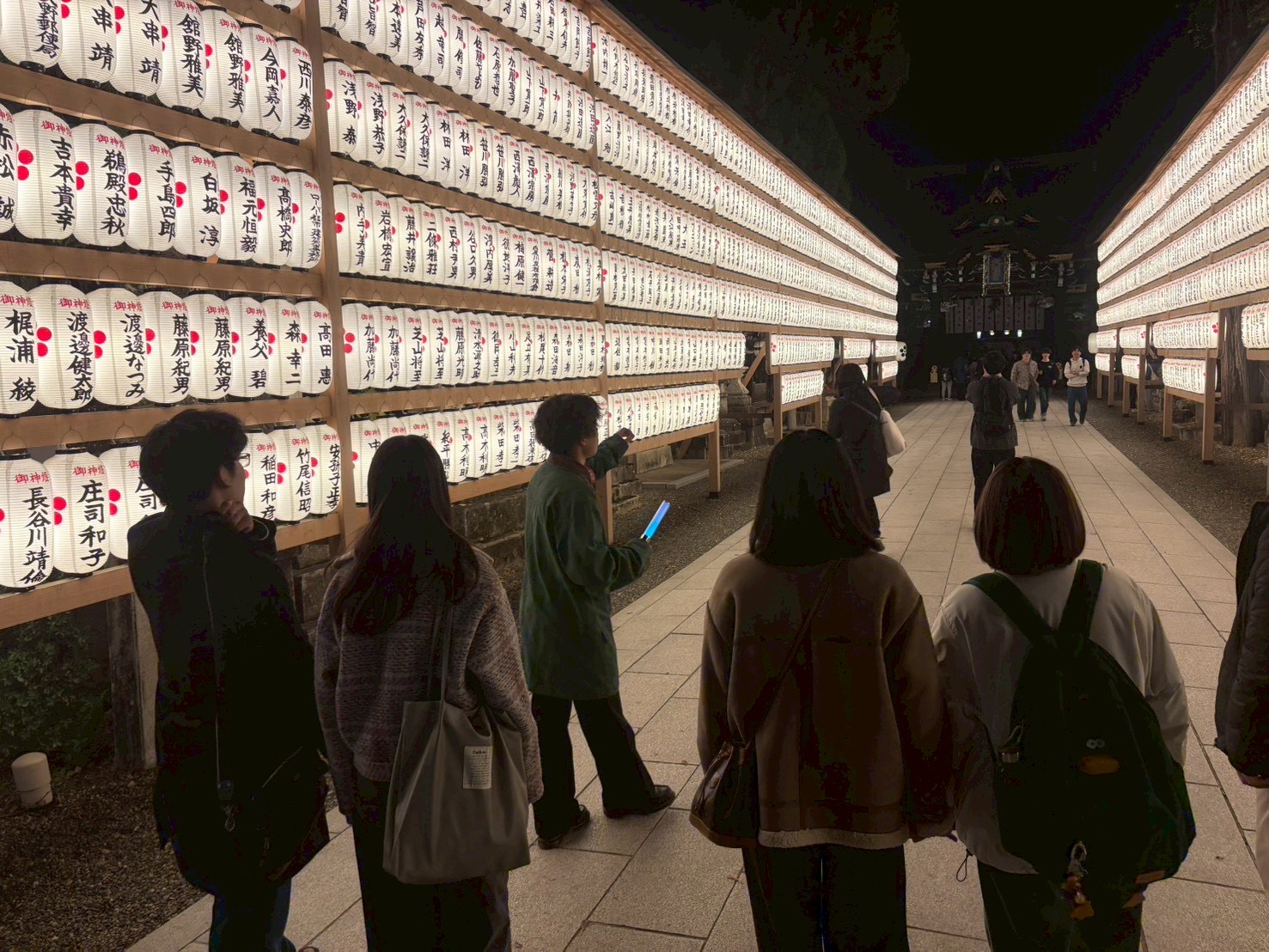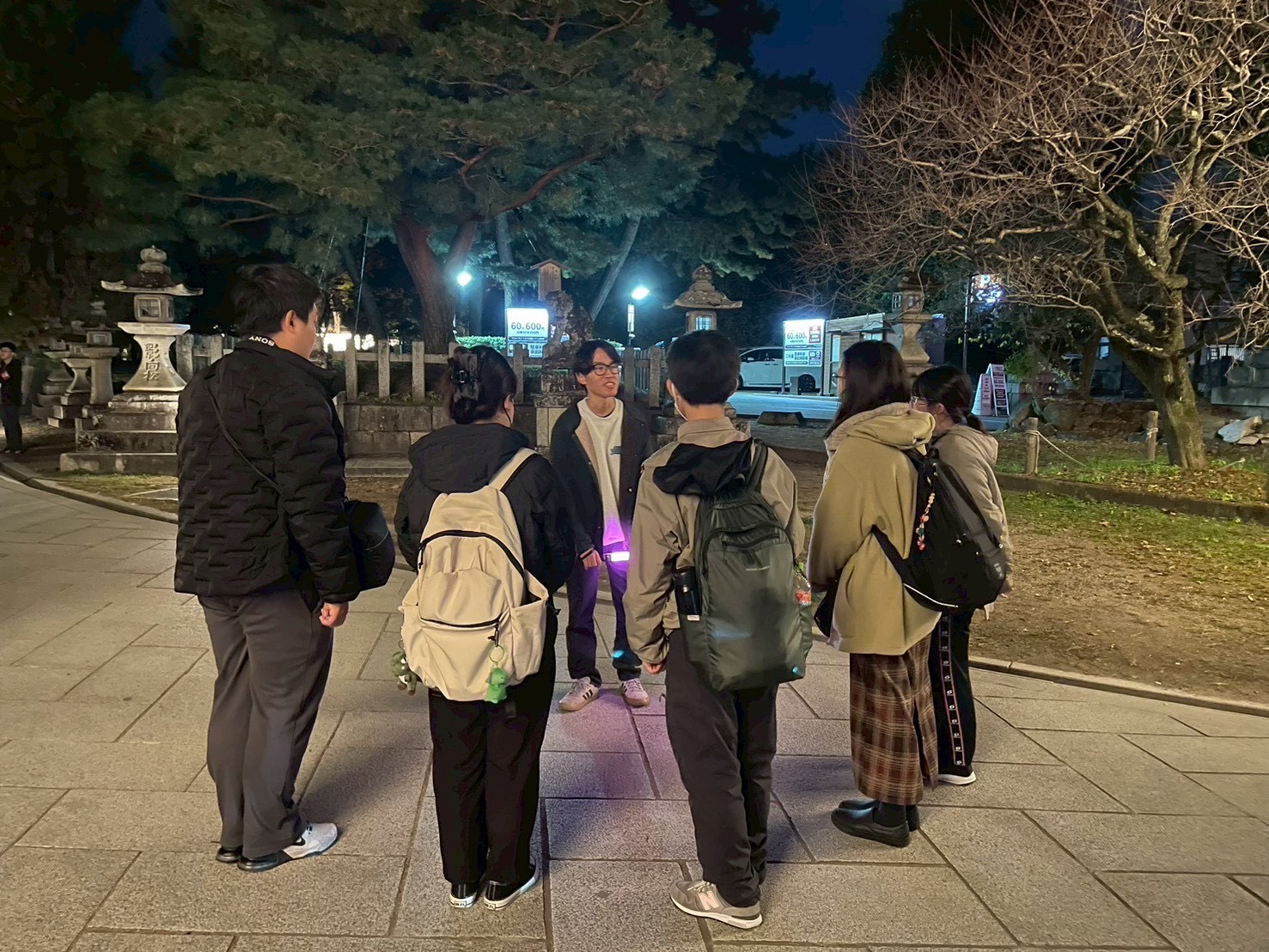 12/2(火)に、「北野天満宮ガイドツアー・紅葉ライトアップ」を開催しました。当日は、立命館大学の学生・院生が80名集まってくれました。北野天満宮で研修を受けた「立命館大学神社仏閣ボランティアガイド」のメンバー24名がグループに分かれ、ガイドツアーを実施しました。