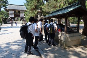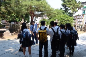 高校生たちは、現地で見る北野天満宮の名所に興味津々の様子でした。