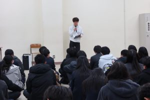 その後、2月に行われた朱雀高校での報告会にも学生ガイドが講評役として参加させていただきました。
