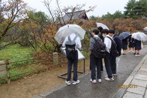 9時30分に仁和寺の二王門前に集合し、高校生に向けて学生が自己紹介を行いました。