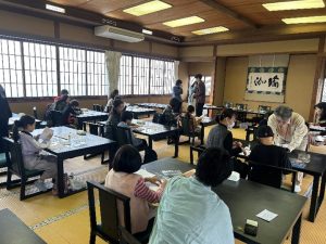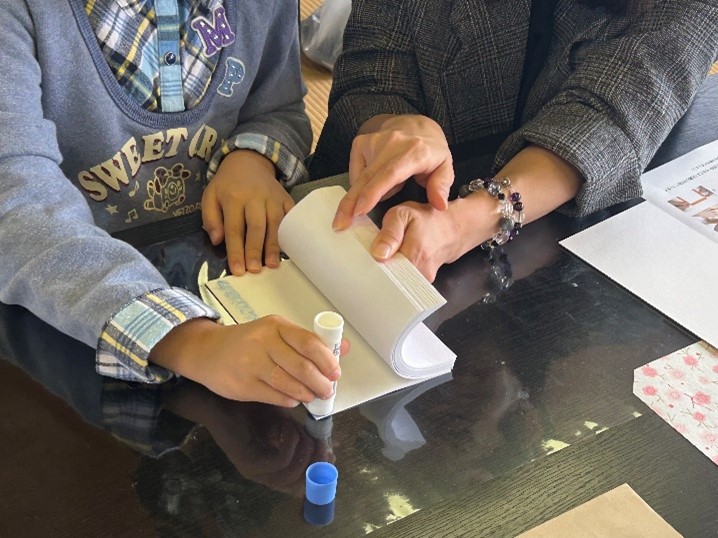 すべての工程が終わった後、参加者の方々にお話を聞いてみると、「難しかったけど楽しかった」や「表紙の台紙と友禅紙を合わせるときに中心に置くことに苦戦した」という声がありました。また「一昨年も参加して今回は2回目」という方や「他のイベントにも参加している」という方もいらっしゃいました。